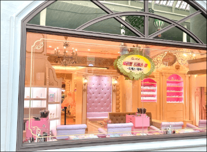 월드크리스털 코스는 25만 원으로 핑크색 드레스와 액세서리, 화장을 하게 됩니다.